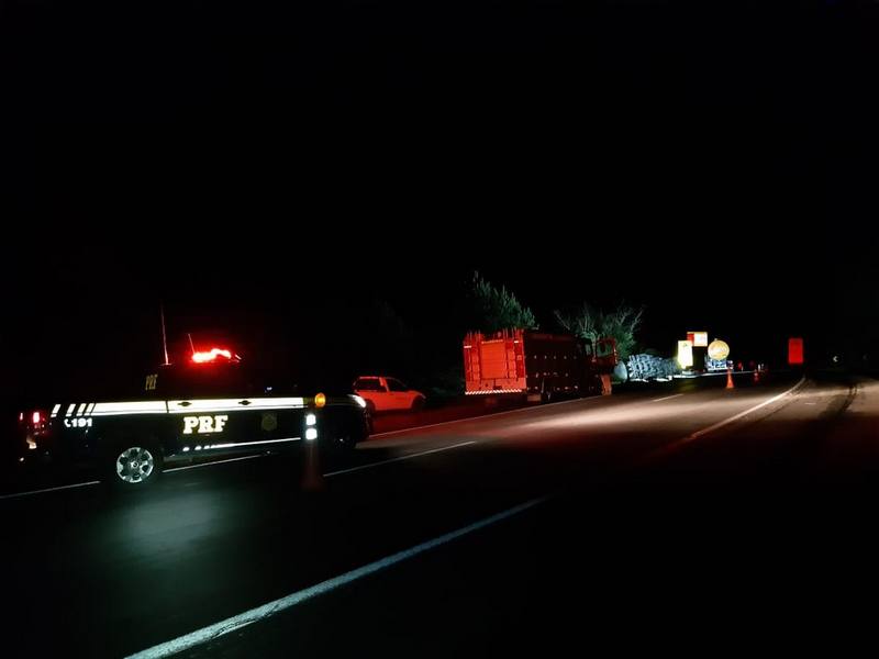 Caminhão com metanol tomba e interdita trecho da BR-116, em Campina Grande do Sul, no sentido São Paulo