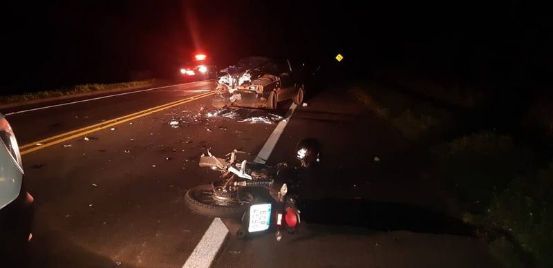 Uma pessoa morre e outras quatro ficam feridas após carro e moto baterem de frente, na BR-376