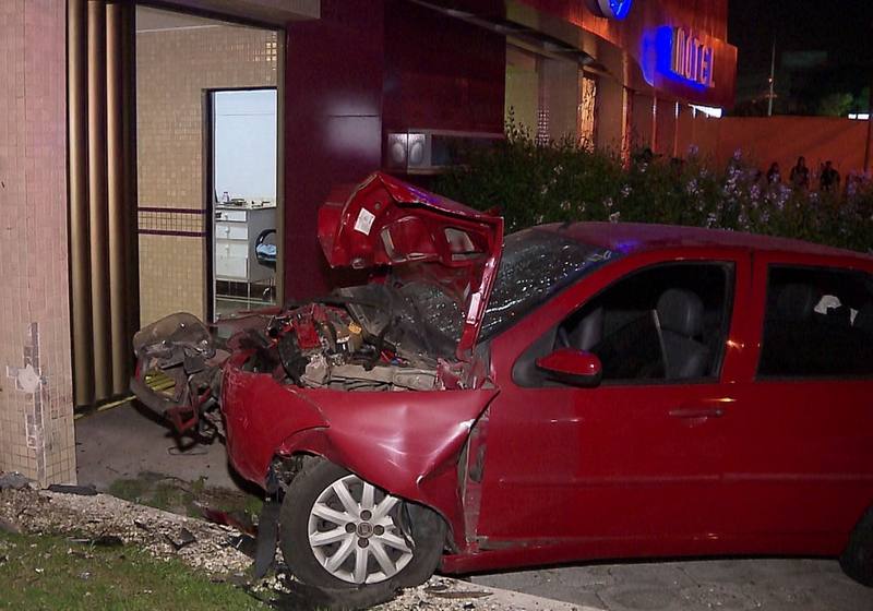 Segundo os bombeiros, o carro passou por cima de uma moita e bateu contra o muro de um motel.