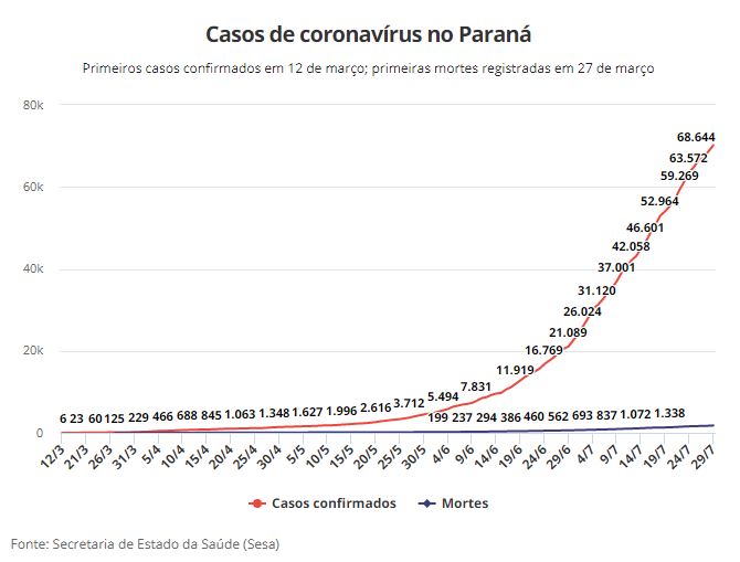 PANDEMIA| Paraná registra 70.155 casos confirmados e 1.792 mortes, indica boletim